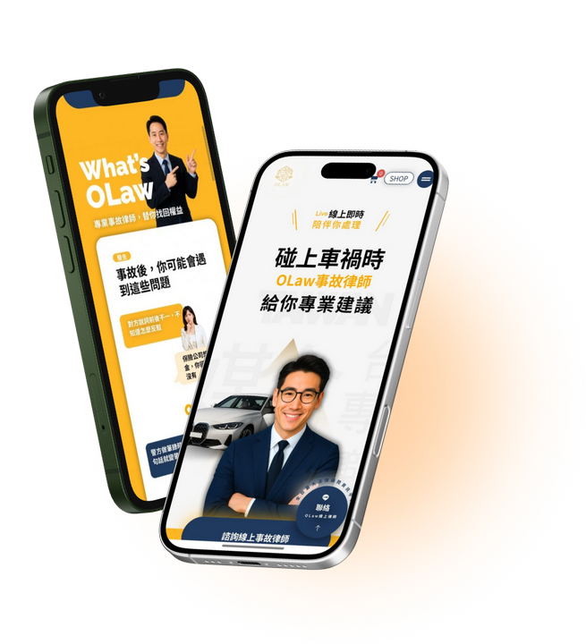 \ Live 線上即時 給出專業建議 / 碰上車禍時 OLAW事故律師 線上陪伴你 立即諮詢律師 你不只需要修好車 你更需要一位會替你爭取的事故律師 你不只需要修好車 你更需要一位會替你爭取的事故律師 More than repairs. Real protection. 你知道嗎? 事故後 1 即使是一台Toyota,修車費 有時候動輒數十萬嗎 2 保險公司不一定會「幫你的忙」 也未必會全部幫你賠償 3 網路教學未必正確,而且 現場還常忘記你的「主張」 很多車主,就是因為「不懂法律」 白白少拿好幾萬,甚至多賠好幾萬。 很多車主,就是因為「不懂法律」 白白少拿好幾萬,甚至多賠好幾萬。 Legal Consultation 但,哪些環節 需要律師 協助 呢! 根據我們長期處理車禍的經驗,車禍事故的當事人「至少」四個階段需要律師協助。 根據我們長期處理車禍的經驗,車禍事故的當事人「至少」四個階段需要律師協助。 1 車禍發生了該怎麼處理? 2 保險公司第一次開價要怎麼回? 3 協商卡住該怎麼辦? 4 要走調解?還是要走評議?資料怎麼準備? 要走調解?還是要走評議?資料怎麼準備? 這四個階段是最需要律師的環節 但每個案件的情況都完全不同,變數超多。因此沒有制式答案,一切必須依照現場狀況由律師判斷。且四個階段之間多半間隔很久,也無法「事先問好備用」 但每個案件的情況都完全不同,變數超多。因此沒有制式答案,一切必須依照現場狀況由律師判斷。且四個階段之間多半間隔很久,也無法「事先問好備用」 購買事故律師顧問方案 可,請律師很貴?! 車禍事故的當事人,依我們的經驗「至少」需要四次律師協助。 車禍事故的當事人,依我們的經驗「至少」需要四次律師協助。 一般諮詢費用 實體律師諮詢費 一小時 5000 元 X 通常諮詢次數 4 次 ≒ 一般平均花費 20,000 元 光是諮詢平均2萬元! 且 傳統實體諮詢還有隱形成本 往來律師事務所的車資往來律師事務所的時間 為什麼 全案顧問方案 比 單次 計費諮詢 更划算 ? 不必 來回律師事務所 不必 每次諮詢都付費 全案顧問方案 就能把整個事故處理流程都交給專業律師線上指導。 就能把整個事故處理流程都交給專業律師線上指導。 OLAW線上事故律師 專注於高效線上法律攻略免去往返奔節省你的時間 專注於高效線上法律攻略,免去往返奔節省你的時間 購買事故律師顧問方案 OLAW 線上事故律師 一次 7,000 元 掌握整個事故流程 不必來回律師事務所、不必每次諮詢都付 5,000、5,000、再 5,000。一次 7,000 元,就能把整個事故處理流程都交給專業律師線上指導。 不必來回律師事務所、不必每次諮詢都付 5,000、5,000、再5,000。一次 7,000 元,就能把整個事故處理流程都交給專業律師線上指導。 不用再來回奔波囉! 7,000 元 OLAW 線上事故律師 給你的不是諮詢, 而 是 全案求償策略 1 一對一完整事故評估 我們會明確算給你聽 律師教你辨識賠償是否合理 你這個案子該拿多少? 現在保險公司開的合理嗎? 立即諮詢OLAW律師 2 告訴你所有可請求的賠償項目 多數人其實不知道,事故中能申請的賠償遠超過想像。 賠償列表區 代步費 事故折損 精神慰撫金 原廠修復差額 —— 多項賠償你可能完全不知道 立即預約OLAW律師 —— 多項賠償你可能完全不知道 3 教你如何回覆保險公司,不被壓價 面對保險公司,每一句怎麼講都會影響賠償結果。 為什麼這麼重要? 你的對話方式會影響賠償金額 怎麼回答,保障你的權益 立即諮詢OLAW律師 4 折損鑑定支援 若需要折損鑑定,協會級專業單位直接支援不是主觀判斷,而是由具公信力的單位提供數據與證據 專業鑑定由誰提供? 社團法人台灣動產鑑價發展協會 鑑價師雜誌社 立即預約OLAW律師 5 調解、法院該怎麼走? OLAW 告訴你最佳策略 最佳策略 並不是每個案子都要打官司,但每個案子都需要正確的評估、流程判斷與策略安排。我們會依你的狀況給出最省時、最可行、最能避免風險的做法。 立即諮詢OLAW律師 事故保障鐵三角:三方專業聯盟全力支援 道呈法律事務所 台灣動產鑑價發展協會 鑑價師雜誌社 專精交通事故與保險談判,知道怎麼替你把錢「談回來」。 TWAAA 推動事故折損公正標準,是保險公司、法院最信任的第三方。 前往網站 鑑價師雜誌社 事故折損 國家專利 M667308 全台最大二手車車價資料庫,讓你的折損金額有科學證據。 前往網站 為什麼 7,000 元反而更划算? 一般事故跑完流程,就算不請律師陪同調解、開庭、寫狀或委任,通常要問實體律師 4 次 一般事故跑完流程,就算不請律師陪同調解、開庭、寫狀或委任,通常要問實體律師 4 次 5,000 × 4 = 20,000 元 但你現在只要 7,000 元 Legal Consultation OLAW 線上事故律師 事故法律攻略一次掌握 全程專業線上陪伴 三方聯盟支援 拿回你應該拿的卻沒拿的賠償 避免被保險公司低估 律師教你辨識和解陷阱 三方聯手,就是你最堅固的事故求償後盾。 OLAW|線上事故律師 立即預約線上事故律師 立即預約線上事故律師 購買事故律師顧問方案 👉 手機即可👉 律師直接回答👉 全流程陪伴👉 三方專業全力支援 本專案 7,000 元服務僅限針對「單一事故」提供之全流程法律策略諮詢與指導。如需委任律師代撰法律文書、陪同調解或代理出庭,相關費用將依具體勞務另行報價。