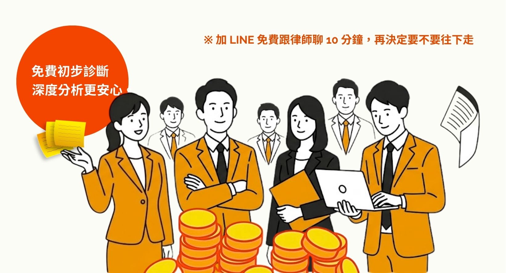 是讓您在沒有任何付款壓力的情況下,先了解律師的溝通方式、服務範圍與收費結構,並確認您的案件是否適合進一步委任。